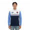 Buy custom rugby jumpers with Coast 2 Coast Sports. This design template is in the style of traditional Canturbury jerseys and has stripes around the body, sleeves and cuffs. Easily change the colours and add logos on this example template. You can upload your school emblem or mascot, or a big school name or team name, or add the year number of your graduation, and place them anywhere you like on the front or back.